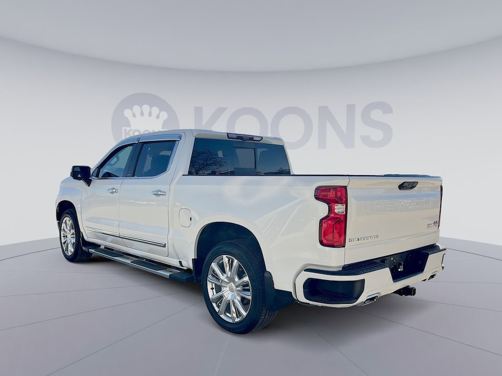 High Capacity Suspension Package, High Country Premium Package (All-Weather Floor Liner (LPO), Power Sunroof, and Wheels: 22" x 9" Painted Aluminum), Preferred Equipment Group 3LZ (10-Way Power Driver Seat w/Lumbar, 10-Way Power Passenger Seat Adjuster w/Lumbar, 12.3" Multicolor Reconfigurable Digital Display, 120-Volt Bed Mounted Power Outlet, 120-Volt Instrument Panel Power Outlet, 2 USB Data Ports, 2nd Row Heated Outboard Seats, Auto-Dimming Inside Rear-View Mirror, Auto-Locking Rear Differential, Bed View Camera, Bluetooth® For Phone, Body-Color Painted Mirror Caps, Chevrolet Connected Access Capable, Chevytec Spray-On Black Bedliner, Chrome Assist Steps, Chrome Recovery Hooks, Color-Keyed Carpeting Floor Covering, Compass, Deep-Tinted Glass, Driver Memory, Dual Exhaust w/Polished Outlets, Dual Rear USB Ports (Charge Only), Electric Rear-Window Defogger, Electrical Steering Column Lock, Electronic Cruise Control, Floor Mounted Center Console, Front Carpeted Floor Mats, Front LED Fog Lamps, Front Rainsensing Wipers, HD Surround Vision, Heated Driver & Front Outboard Passenger Seats, Heated Steering Wheel, Hitch Guidance w/Hitch View, Integrated Trailer Brake Controller, Keyless Open & Start, LED Cargo Area Lighting, OnStar & Chevrolet Connected Services Capable, Outside Heated Power-Adjustable Mirrors, Perimeter Lighting, Power Front Passenger Windows w/Express Up/Down, Power Front Windows w/Driver Express Up/Down, Power Rear Windows w/Express Down, Power Sliding Rear Window w/Rear Defogger, Power Tailgate, Power Tilt & Telescoping Steering Column, Rear Carpeted Floor Mats, Rear Cross Traffic Alert-Braking, Rear Pedestrian Alert, Rear Wheelhouse Liners, Remote Vehicle Starter System, Safety Alert Seat, SiriusXM w/360L, Standard Tailgate, Steering Wheel Audio Controls, Theft Deterrent System (Unauthorized Entry), Trailer Camera Provisions, Trailer Side Blind Zone Alert, Trailering App, Ultrasonic Front & Rear Park Assist, Universal Home Remote, Ventilated Driver & Front Passenger Seats, Wi-Fi Hot Spot Capable, Wireless Charging, Wireless Phone Projection, and Wrapped Steering Wheel), Technology Package (15" Diagonal Multicolor Head-Up Display, Adaptive Cruise Control, and Rear Camera Mirror), Trailering Package (Hitch Guidance), Up-Level Rear Seat w/Storage Package, 10-Speed Automatic, 4WD, Jet Black/Umber Leather, 170 Amp Alternator, 220 Amp Alternator, 3.23 Rear Axle Ratio, 4-Wheel Disc Brakes, 7 Speakers, ABS brakes, Adaptive Ride Control Suspension, Air Conditioning, Alloy wheels, AM/FM radio: SiriusXM with 360L, Apple CarPlay/Android Auto, Auto High-beam Headlights, Auto-dimming door mirrors, Auto-dimming Rear-View mirror, Automatic Emergency Braking, Automatic temperature control, Bodyside moldings, Brake assist, Bumpers: body-color, Delay-off headlights, Driver door bin, Driver vanity mirror, Dual front impact airbags, Dual front side impact airbags, Electronic Stability Control, Electronic Transmission Range Selector Shifter, Engine Block Heater, Following Distance Indicator, Forward Collision Alert, Front anti-roll bar, Front Bucket Seats, Front Center Armrest, Front dual zone A/C, Front fog lights, Front License Plate Kit, Front Pedestrian Braking, Front reading lights, Front wheel independent suspension, Fully automatic headlights, Garage door transmitter, Genuine wood console insert, Genuine wood dashboard insert, Genuine wood door panel insert, Heated door mirrors, Heated front seats, Heated rear seats, Heated steering wheel, Illuminated entry, IntelliBeam Automatic High Beam On/Off, Lane Keep Assist w/Lane Departure Warning, Low tire pressure warning, Memory seat, Not Equipped w/Steering Column Lock, Occupant sensing airbag, Outside temperature display, Overhead airbag, Overhead console, Panic alarm, Passenger door bin, Passenger vanity mirror, Perforated Leather Seat Trim, Power door mirrors, Power driver seat, Power passenger seat, Power steering, Power windows, Premium audio system: Chevrolet Infotainment 3Pre-Owned 2023 ChevroletSilverado 1500 High Country Truck Crew Cab