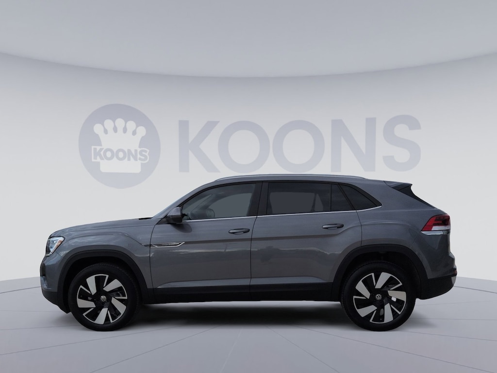 Great 2025 Volkswagen Atlas Cross Sport 2.0T SE w/Technology in Platinum Gray Metallic with Titan Black Leather with 4-Wheel Disc Brakes, 4-Wheel Independent Suspension, 6 Speakers, ABS brakes, Air Conditioning, Alloy wheels, AM/FM radio: SiriusXM with 360L, Auto High-beam Headlights, Auto-dimming Rear-View mirror, Automatic temperature control, Brake assist, Bumpers: body-color, Compass, Delay-off headlights, Driver door bin, Driver vanity mirror, Dual front impact airbags, Dual front side impact airbags, Electronic Stability Control, Emergency communication system: VW Car-Net Safe & Secure 5-year, Exterior Parking Camera Rear, Four wheel independent suspension, Front anti-roll bar, Front Bucket Seats, Front Center Armrest, Front dual zone A/C, Front fog lights, Front reading lights, Fully automatic headlights, Heated & Actively Ventilated Front Seats, Heated door mirrors, Heated front seats, Heated steering wheel, Illuminated entry, Low tire pressure warning, Occupant sensing airbag, Outside temperature display, Overhead airbag, Overhead console, Panic alarm, Passenger door bin, Passenger vanity mirror, Perforated V-Tex Leatherette Seating Surfaces, Power door mirrors, Power driver seat, Power Liftgate, Power steering, Power windows, Radio data system, Radio: MIB3 Composition Media AM/FM/HD, Rain sensing wipers, Rear anti-roll bar, Rear reading lights, Rear seat center armrest, Rear window defroster, Rear window wiper, Remote keyless entry, Security system, Speed control, Speed-sensing steering, Split folding rear seat, Spoiler, Steering wheel mounted audio controls, Tachometer, Telescoping steering wheel, Tilt steering wheel, Traction control, Trip computer, Turn signal indicator mirrors, Variably intermittent wipers, Ventilated front seats, and Wheels: 20" 5-Spoke 2-Tone Machined Alloy.
